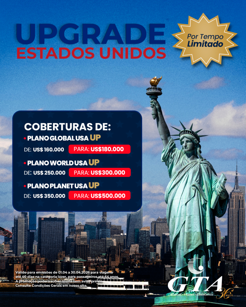 A GTA lançou uma promoção por tempo limitado para viagens de lazer aos Estados Unidos, com upgrade gratuito em quatro categorias do plano.